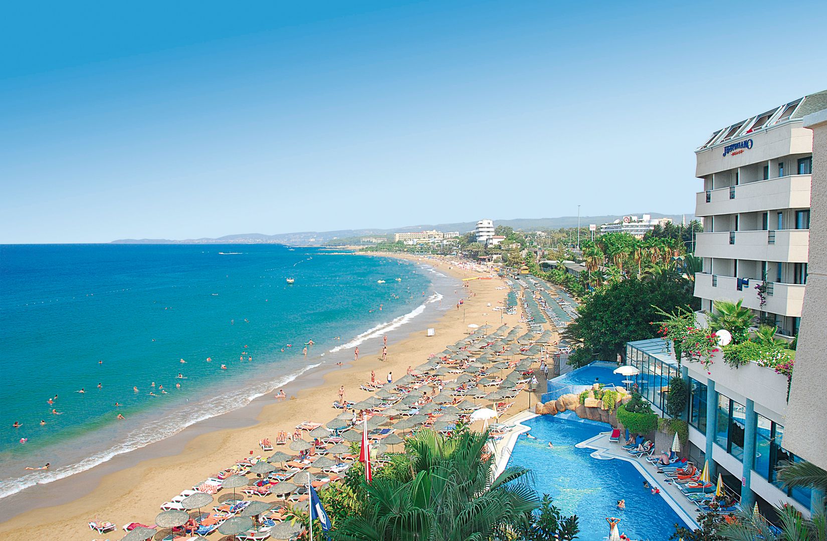 Das Hotel ist auch mit dem Zielflughafen Gazipasa (GZP) buchbar, die Entfernung liegt bei 66 km. Antalya Flughafen ist ca. 100 km entfernt.